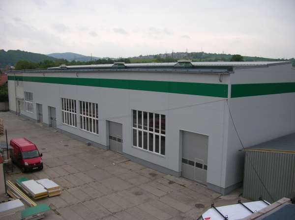 Pronájem samostatné části vytápěné průmyslové haly s mostovým jeřábem nosnosti 5.000 kg s možností upravené kanceláře, samostatný vjezd.